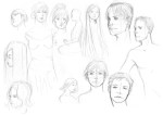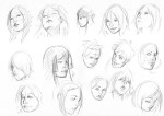 Außerdem habe ich wieder ein paar Übungen gemacht, die ich euch nicht vorenthalten will. Darunter sind auch Kopf-Skizzen. Ich hatte in letzter Zeit nämlich Schwierigkeiten mit der Verkürzung des Gesichtes, wenn ich Leute in Seitenansicht gezeichnet habe. Also hab ich ein bisschen geübt. Als Referenz habe ich einige Fotos benutzt, die ich auf DeviantArt gefunden habe.