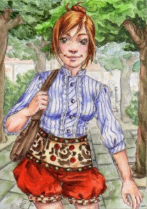 Heyho alle zusammen! Hier ist meine neueste KAKAO-Kreation! Das Ganze ist wieder in Aquarell gemalt und mit Aquarellbuntstift gelined! Ich liebe es einfach, Muster in die Kleidung zu zeichnen. Das Kakao-Format ist einfach spitze dafür, weil ich so viele Details zeichnen kann, wie ich will und das Bild fertig ist, bevor mir das Detailzeichnen überdrüssig wird! Bei A4-Bildern fällt es mir immer etwas schwerer das durchzuhalten! ^.^“