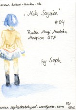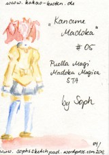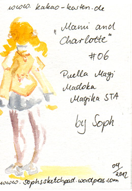 Hier ist die dritte und letzte Karte für die Madoka-STA! Diesmal habe ich Mami und Charlotte gemalt. Ich muss sagen, dass ich mit der Karte irgendwie am unzufriedensten bin. Die Farben sind so ähnlich geworden, dass man die einzelnen Elemente des Bildes nicht so gut unterscheiden kann und die Wolkenspirale ist mir irgendwie gar nicht gelungen. Na ja, aus Fehlern lernt man. 😀 Ich hoffe, die Karte gefällt euch trotzdem.
