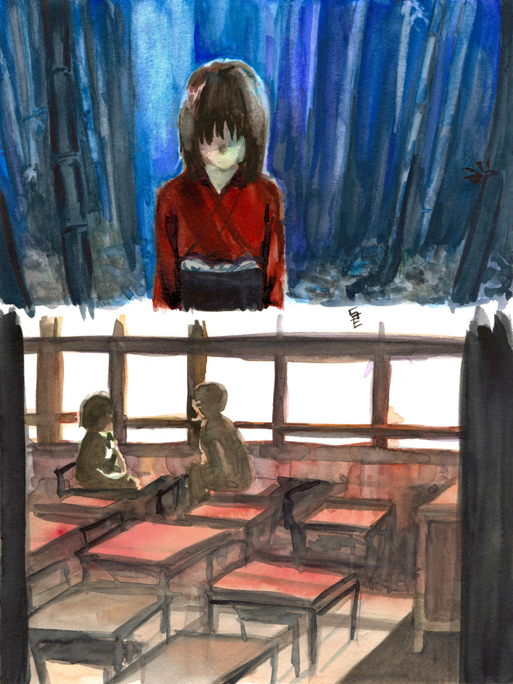 Diesmal habe ich keine Bleistiftvorzeichnungen gemacht und versucht mich ganz auf die Farbe zu konzentrieren ohne auf die Form zu achten. Zwar bin ich noch nicht ganz an dem Punkt angekommen, bei dem ich sein will, aber ein bisschen Verbesserung bahnt sich langsam an. Am meisten mag ich selbst das blaue Bild, das ich zuletzt gemalt habe. Was mir nämlich am meisten an meinen bisherigen Colorationen nicht gefallen hat – egal ob sie jetzt eine besondere Farbstimmung haben soltlen oder Szenen in normalem Sonnenlicht zeigten – war, dass sich die einzelnen Farbfelder nicht so richtig miteinander zu verbinden schienen. Mit Farbenmischen hatte ich von Anfang an Probleme. Bei dem Blauen, habe ich aber das Gefühl, dass es langsam in die richtige Richtung geht! Es liegt noch viel Übungsarbeit vor mir! (°o°)
