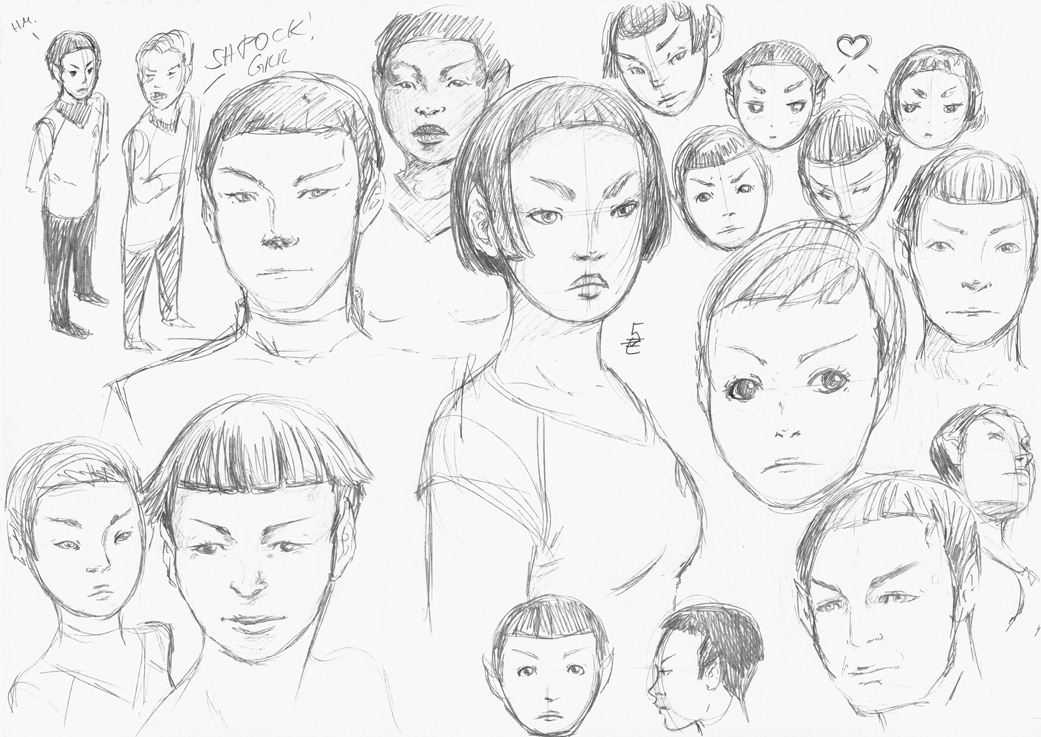 Natürlich muss ich euch gleich mein Fanartgekrakel zu dem Thema zeigen. Das Bild oben habe ich immer vor Augen, wenn ich das Into aus der alten Serie höre. Unten ein paar Skizzen von Random-Vulkaniern.