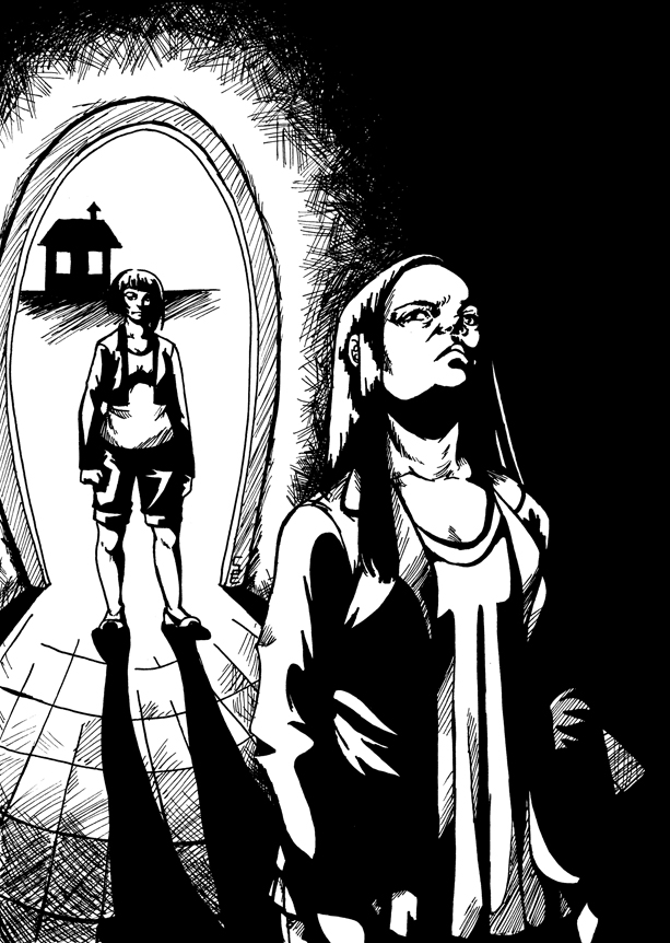 Ich liebe schwarz-weiß-Kontraste- Die beiden Frauen auf dem Bild scheinen eine gemeinsame Geschichte zu haben. Mir ging es hier vorrangig um das Zeichnerische. Falls jemand aber irgendeine spontane Assoziation hat, kann er / sie sie mir sehr gerne in die Kommentare schreiben! 😀