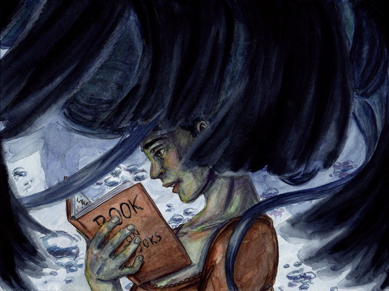 18 x 24 cm. Aquarellfarben, brauner Aquarellstift & weißer Polychromo.