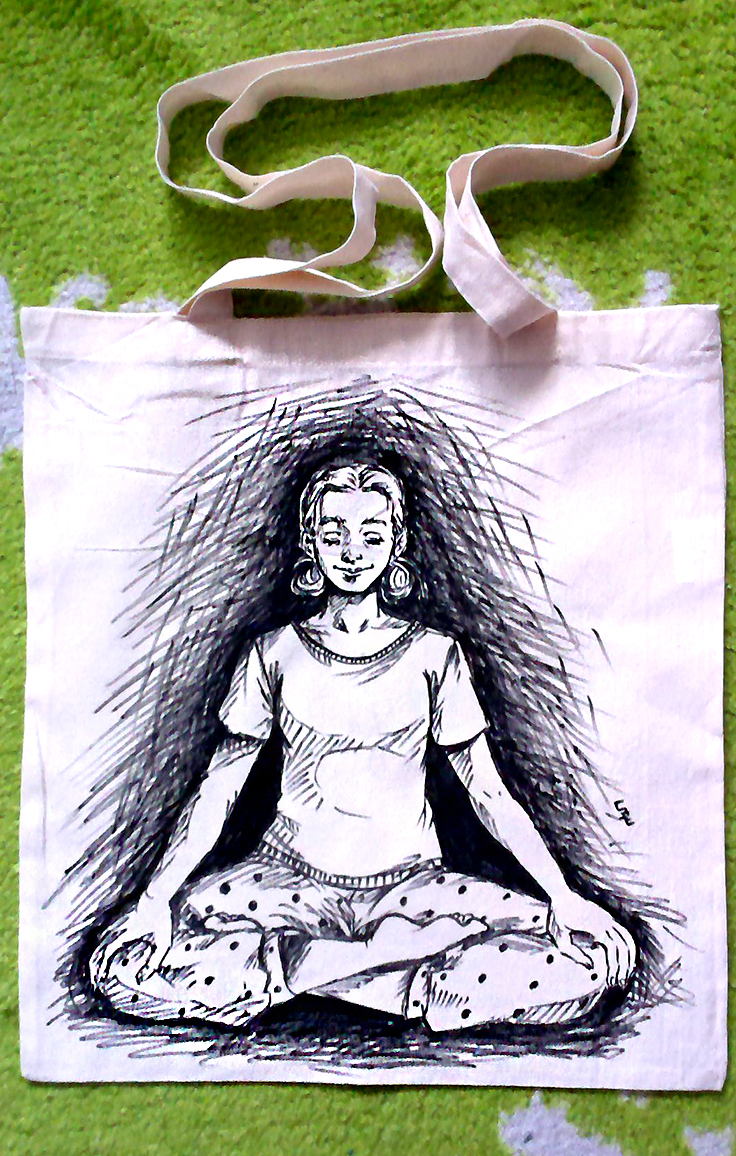 Wie ihr unschwer auf dem Blog erkennt, verschenke ich in letzter Zeit gern Selbstgezeichnetes an Freunde. Hier ist ein Geburtstagsgeschenkt auf einem weiteren Baumwollbeutel. Das Format war diesmal für mich ungewohnt groß. Ich hatte tatsächlich leicht Probleme, die Proportionen hinzubekommen (die Beine sind definitiv zu lang), aber ich bin überrascht, wie schön die Linien auf Stoff aussehen können. Das werde ich definitiv öfter ausprobieren.