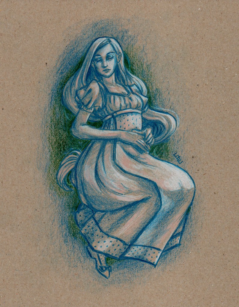 Letzte Woche hatte ich mal wieder einen Drang nach Jane-Austen-Geschichten. Also habe ich mir ein paar Filme angeschaut und Hörbücher gehört. Ich mag ihren spitzen Schreibstil. Deswegen war ich diese Woche auch in Stimmung, ein Regencykleid zu zeichnen.