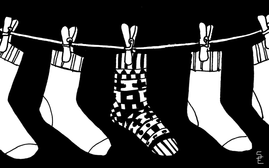 Außenseiter. Wenn du eine Socke verlierst… Die Bilder sind 8 x 5 cm groß.