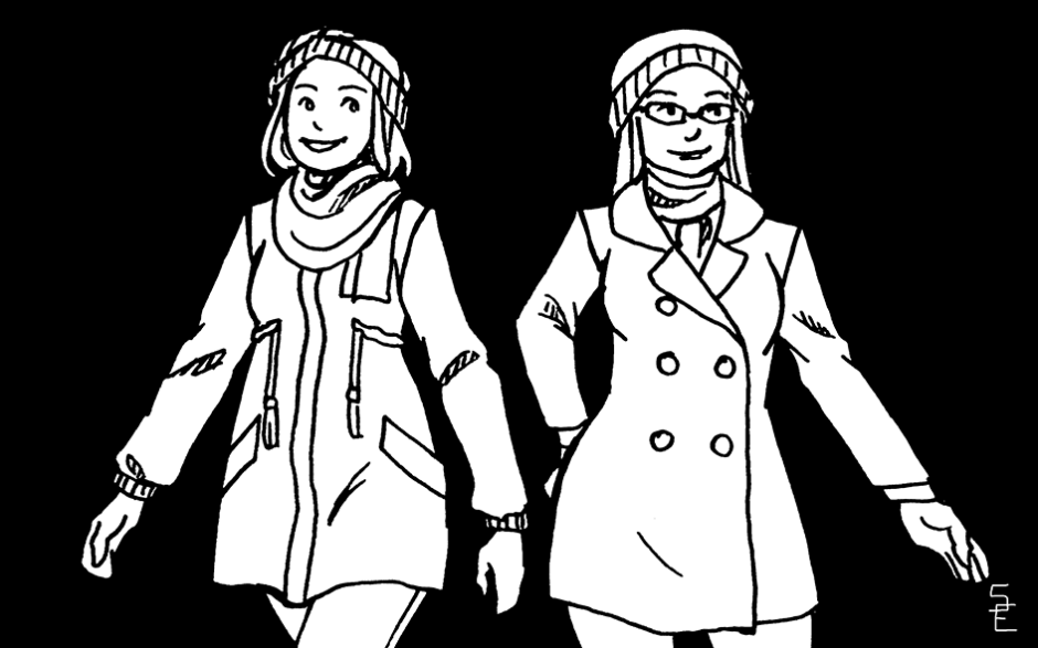 Mantel. Ich konnte mich nicht entscheiden, welchen von beiden Mäntel ich zeichnen wollte. Also habe ich beide gemacht. Die Bilder sind 8 x 5 cm groß.