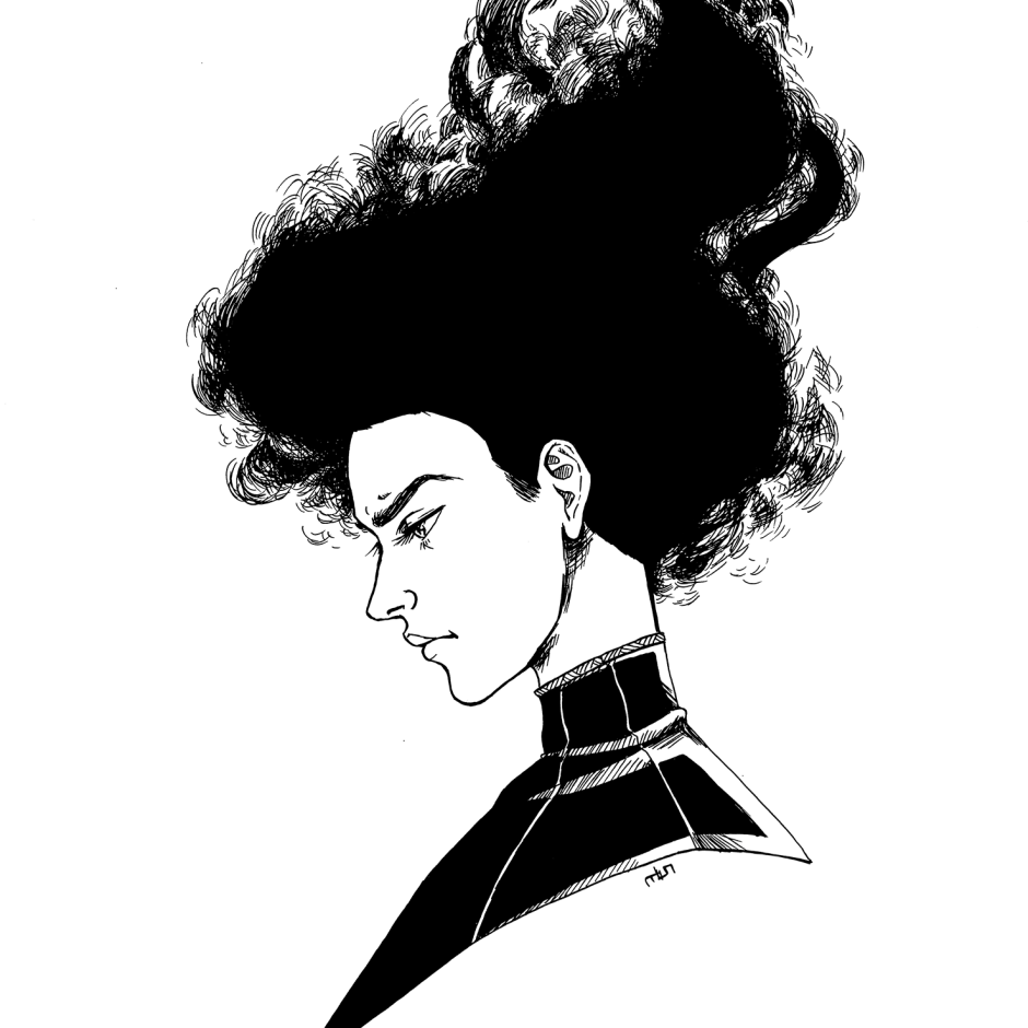 Meine Idee hinter dieser Zeichnung war, ihre Haare wie eine schwarze Wolke aussehen zu lassen. Irgendwie sieht es eher wie eine lodernde Flamme aus. 😀 Ich glaube das nächste Mal würde ich ein paar weiße Stellen mehr in die Mitte der Haare zeichnen. Ich bin aber sehr zufrieden mit der Geduld, die ich aufgebracht habe, all die feinen Linien in die Haare zu zeichnen. Das war echt meditativ.