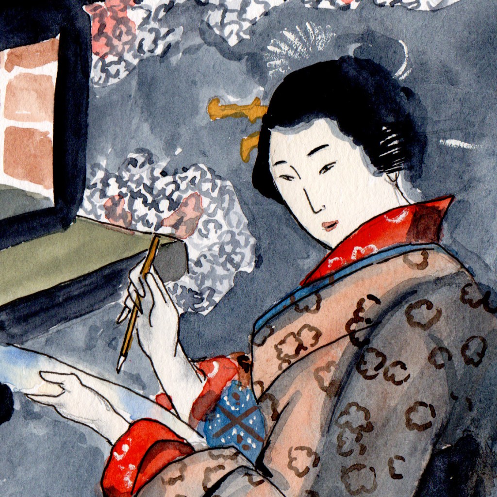 For the artist study I chose the japanese artist Katsushika Ōi who was the daughter of famous Hokusai. I like how light and shadow interact in her work. This is a detail from the ukiyo-e “Cherry trees at night”.