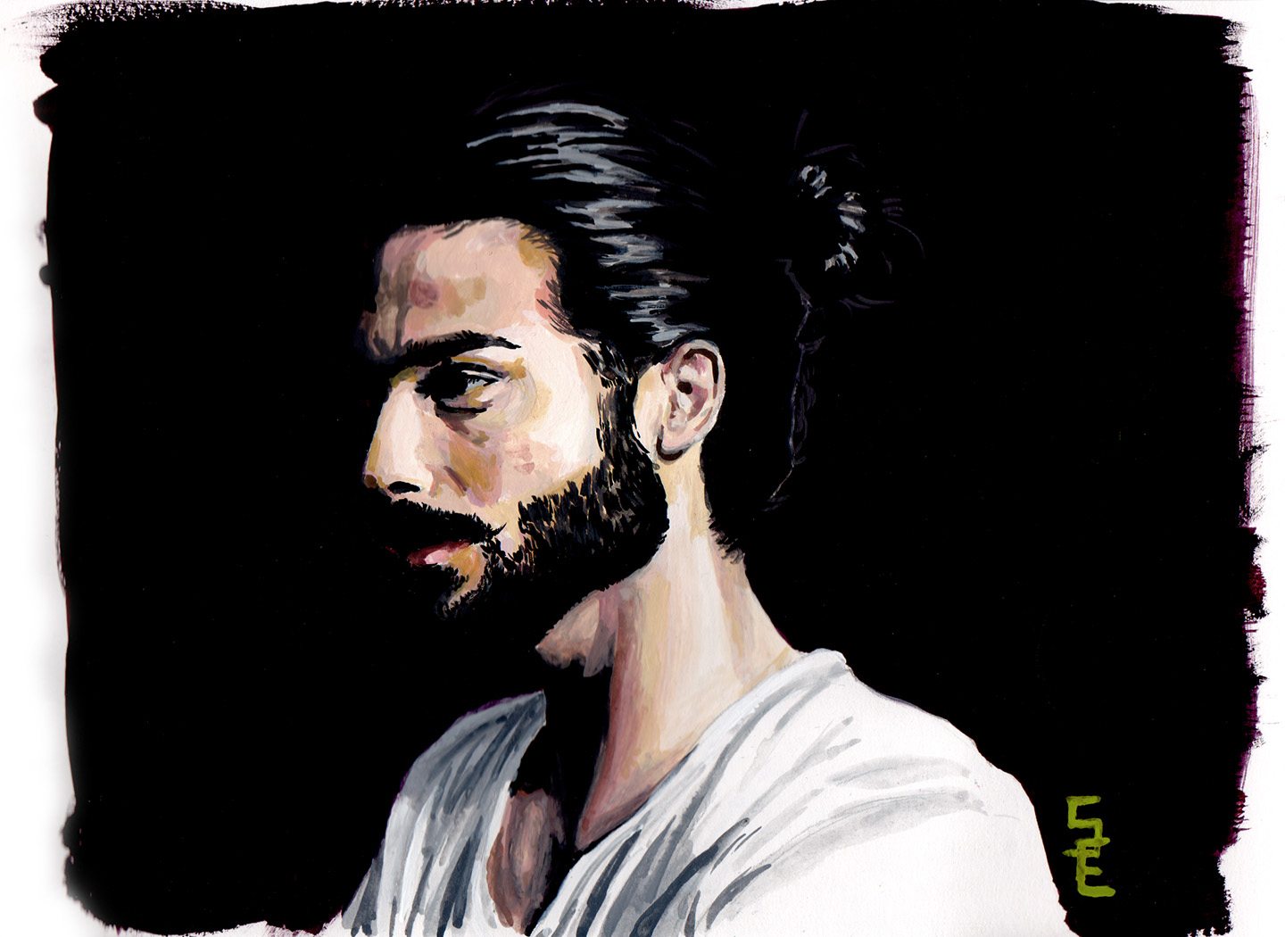 Finally, this is the last one in the 30 ways to fill a sketchbook challenge. I did it, people! It was also one of the prompts that I dreaded but it turned out it was really fun to do. I feel I understand how to paint skin much better. Unfortunately, the scanner did not pick up the difference between background color and the hair well, so I have included a photo I took with my mobile phone. The reference picture can be viewed here.
