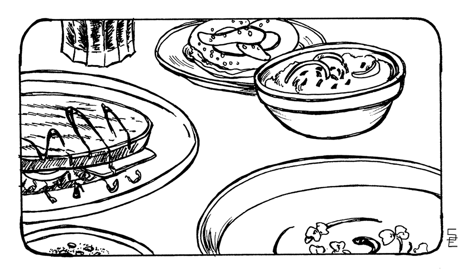 It seems there is a plethora of tasty foods at the new location! You can see all post with panels under the tag The BookMiniComic (a page with all panels in the row in the menu will follow soon).