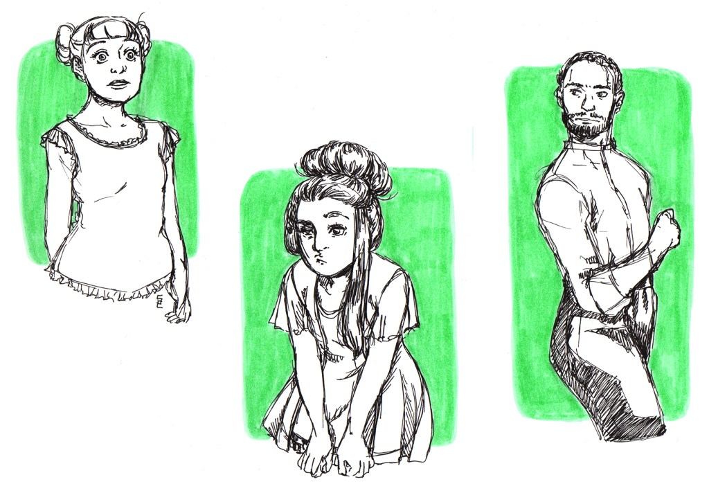 I worked very hard this week to get the next chapter of the psychoSoph comic done for my other blog. So, this week there will be sketches, too. They are similar to the ones “with a touch of color” that I did a few weeks ago. Click of the pictures to see the comic.