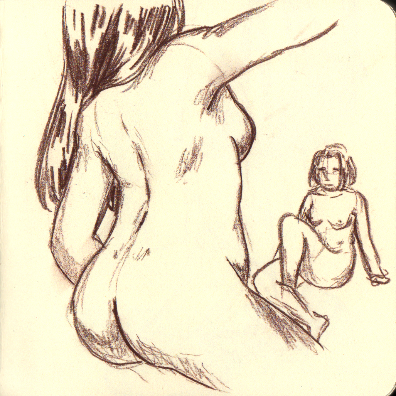 More from the mini sketchbook. When I last visited the art store, I bought one of those thick mechanical graphite pens and some of the sepia-colored leads. I absolutely love sketching with it! It was surprising how versatile it is: I do not expect to be able to draw thinner lines on top of the thick flat ones with it. It is definitely going into my standard toolbox! The sketches were done without reference photos this time.