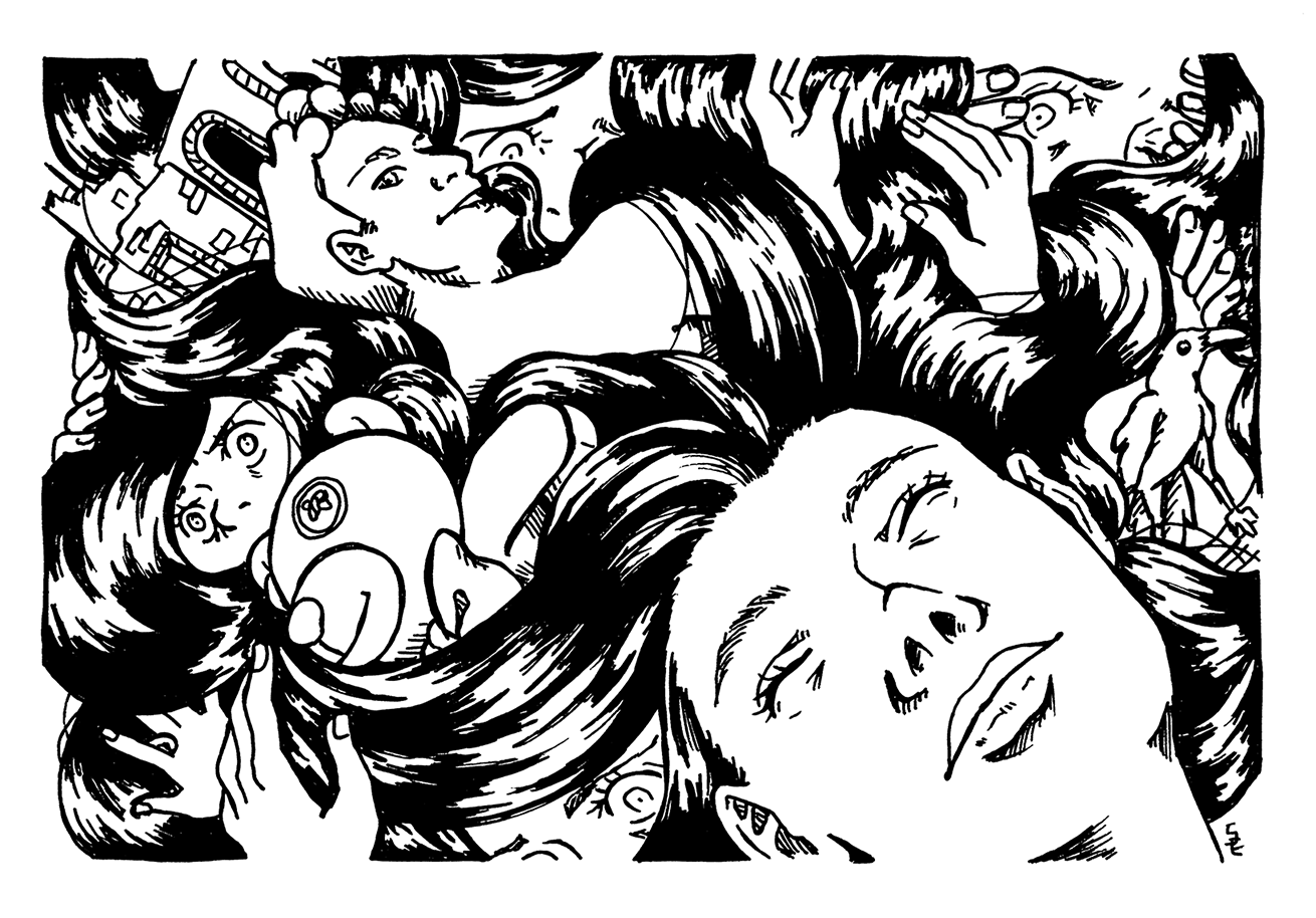 This year, I am attempting another Inktober! But I will not guarantee, that I will make it to the end. Originally, I was planning to make A5-sized drawings this time, but it turns out life got in the way a little and I am sticking to a smaller 12,8 by 8,5 cm that can be made faster. So, let’s go, smaller drawings! For today’s prompt “dream” I made another one of my surreal hair drawings. What do you think?